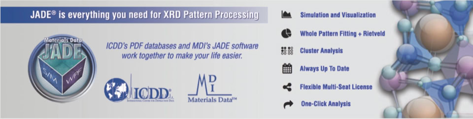 20193月,ICDD收購Material Data,開始出版發行JADE 軟件。ICDD-PDF數據庫和MDI-JADE聯合起來,將成為全球材料領域分析XRD數據的最佳選擇。ICDD將繼續為全球XRD實驗室和材料學服務,實現材料數據的統一,為科學的發展提供強有力的支持!了解更多>>